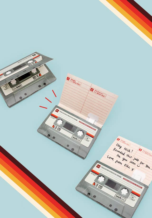 This retro-styled, cassette mixtape card ensures a fun, impactful delivery of your greeting when you send a sound to your family or friends. With up to two-minutes recording time, you can really express your sentiments and feelings with this delightful & imaginative greeting card. Once opened, your personal message will play automatically – and if that’s not enough, there’s space for you to also write an additional hand-written message to accompany it.