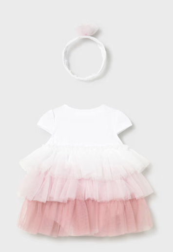 1601 Mayoral Baby Girls Tulle Special Occasion Bodysuit Dress w/ Headband - Baby Rose Pink