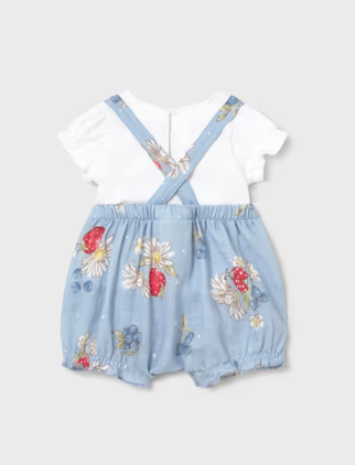 1638 Mayoral Baby Girls Strawberry Smocked Bubble Romper + T-Shirt Set - Lagoon Blue