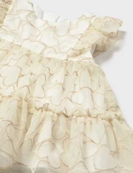 1890 Mayoral Baby Girls Embroidered Hearts Allover Overlay Dress - Wheat