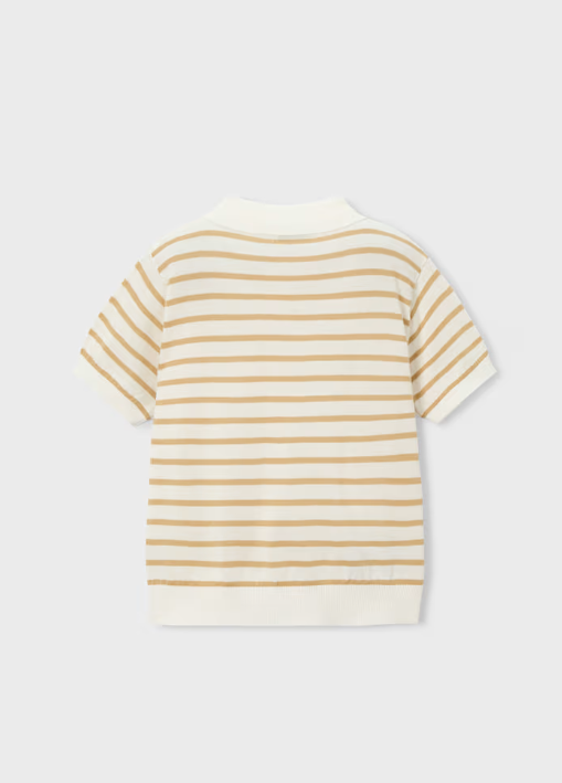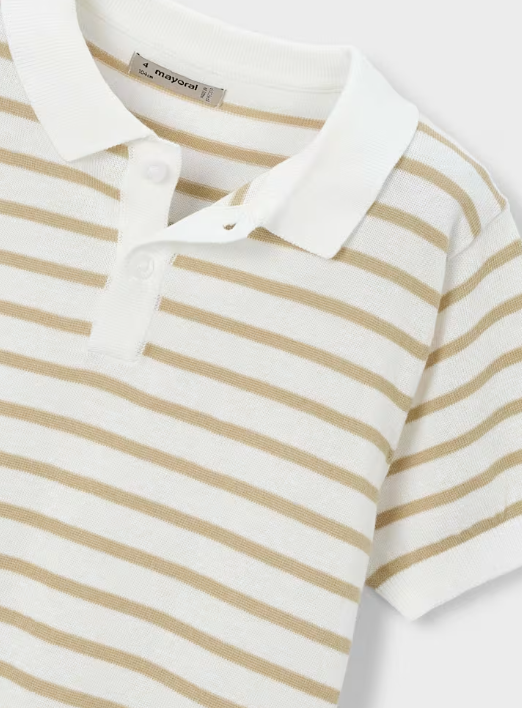 3106 Mini Boy S/s Striped Polo Shirt - Cream Brown
