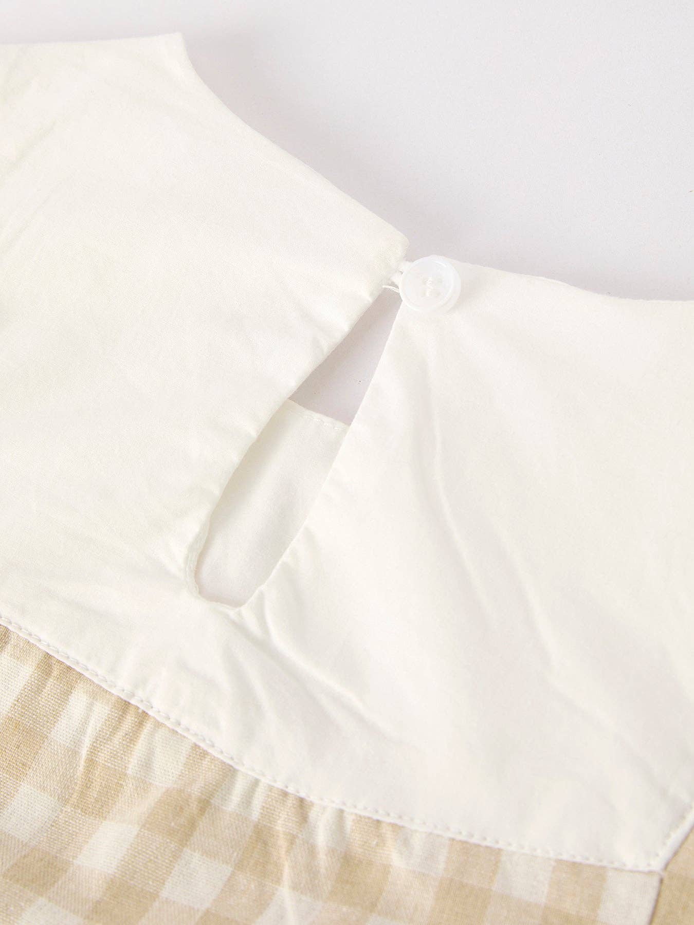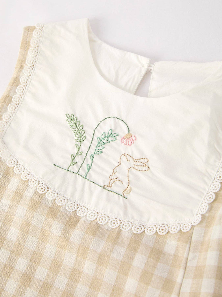 Sleeveless Embroidered Bunny Bib Flare Dress - Natural Gingham