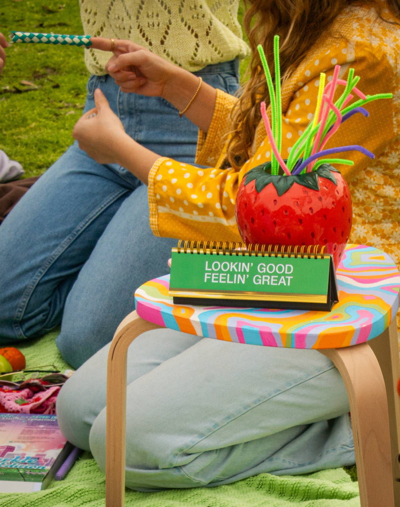 The desktop flip book contains 50 titles and phrases so there is always one to fit your vibe.