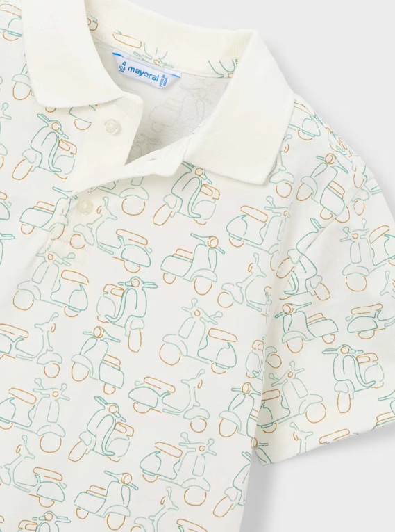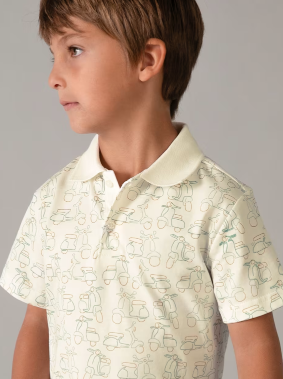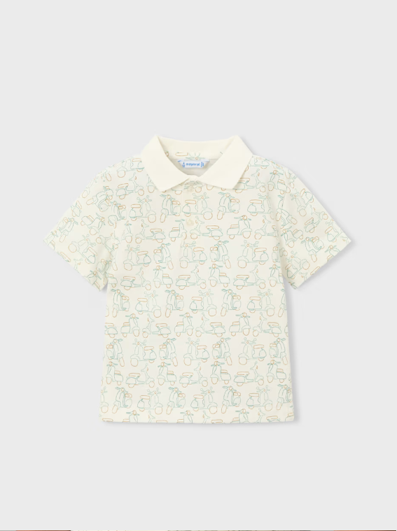 3104 Mini Boy S/s Printed Polo Shirt - Cream Green