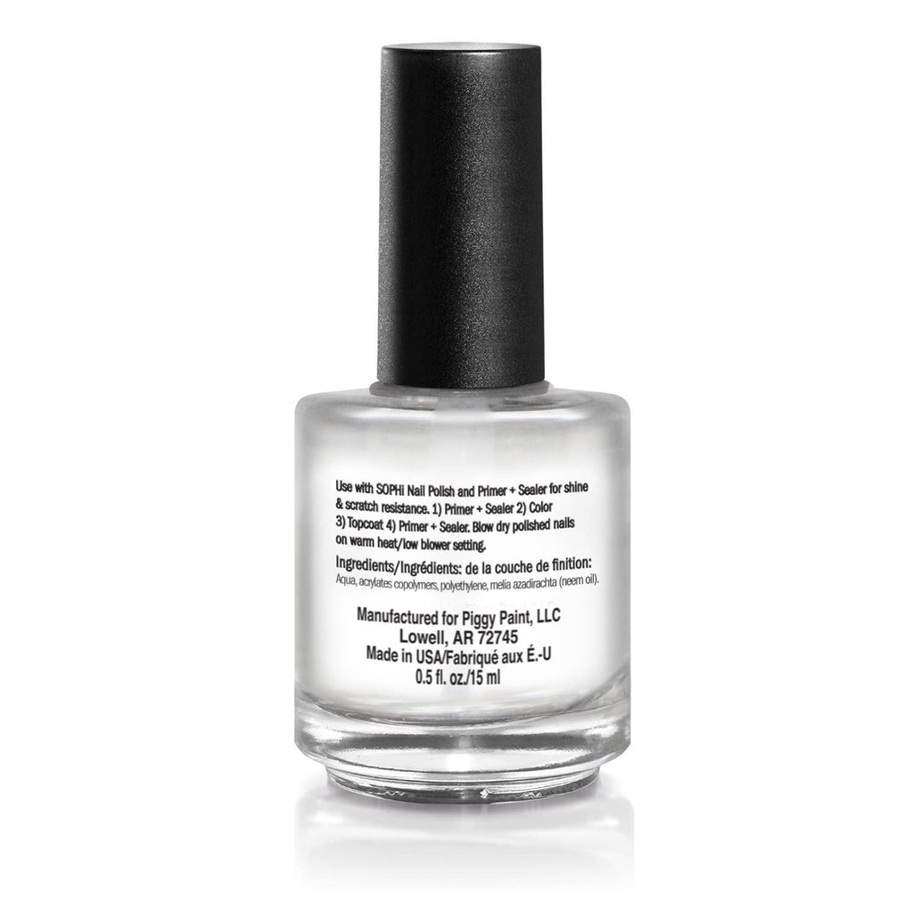 Directions: Wash hands with soap and water Apply very thin layer of PRIMER + SEALER for chip resistance. Air Dry. Apply 2-3 thin coats of SOPHi Nail Polish Between polish coats, blow dry polished nails on warm heat/ low blower setting. With no harsh chemicals, the heat hardens polish for maximum chip resistance. Apply Shine Topcoat for shine & scratch resistance. Repeat blow dryer. Apply Primer + Sealer on top of Topcoat for extended wear. Be sure to cover tips of nails. Repeat blow dryer.