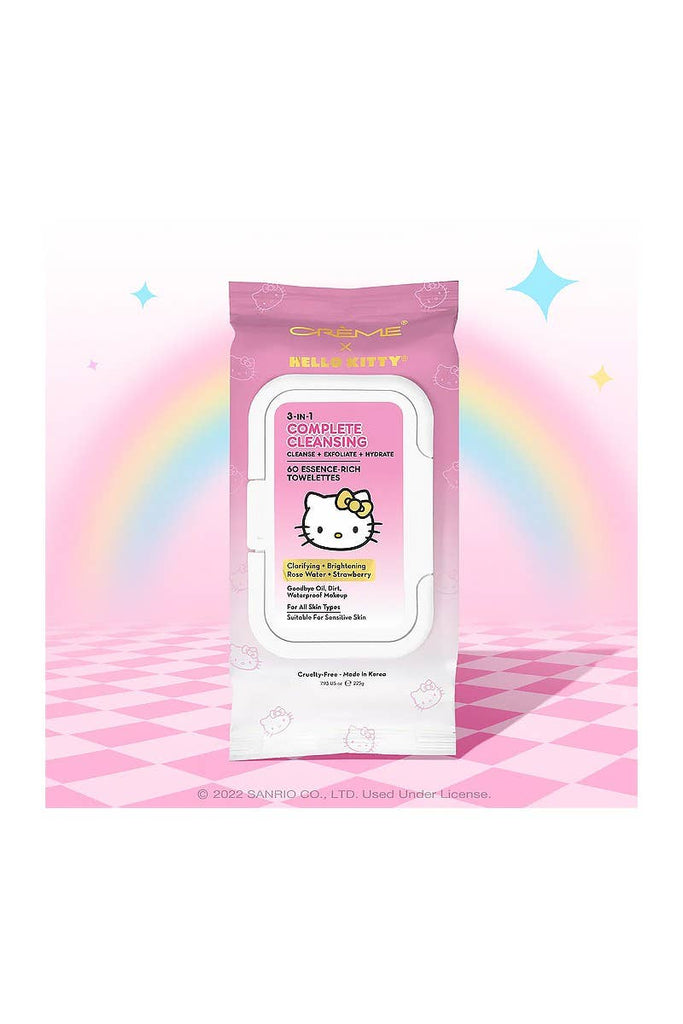 The Creme Shop x Hello Kitty Rose Water + Strawberry 3-In-1 Complete Cleansing Towelettes.