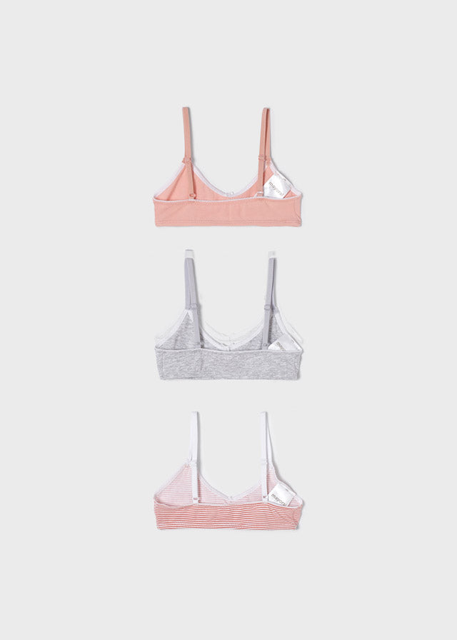 10209 Mayoral Girls Training Bras w/ Adjustable Straps, Peach, 3 PC Set