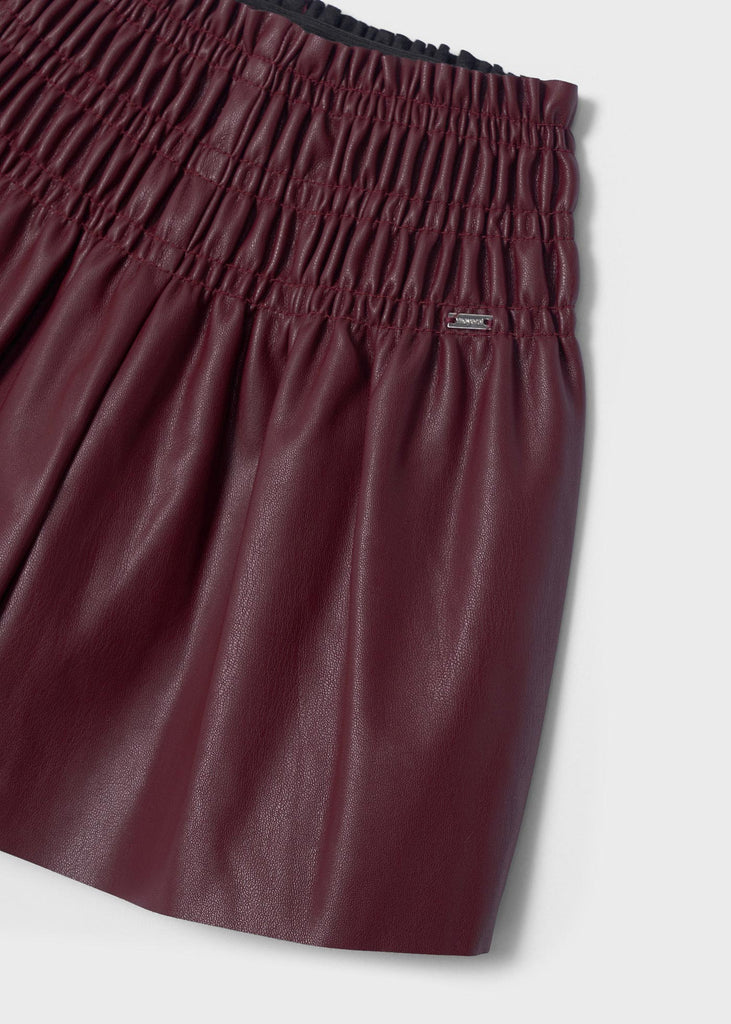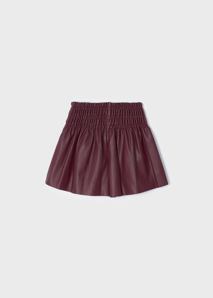 4950 Mayoral Girls Leatherette Skirt Shorts, Burgundy