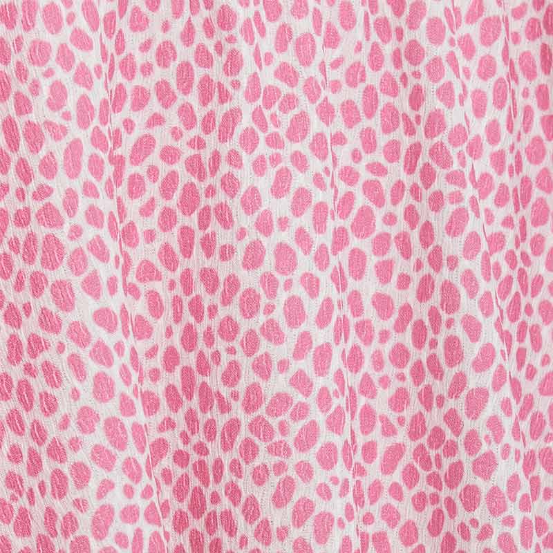 Soft round neckline slightly off the shoulder shirt, soft and flowy with a stylish, modern silhouette. Long sleeve polka dotted pink and white loose shirt. Complete her wardrobe with this cute Mayoral Girls Cropped Off- White Jeans, item #6546.