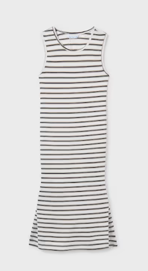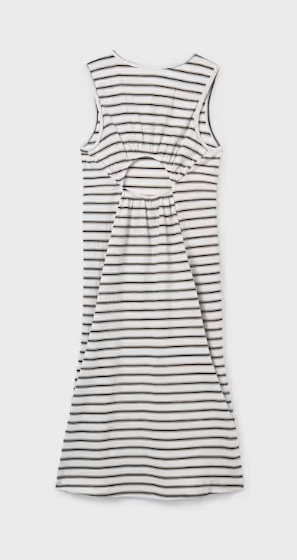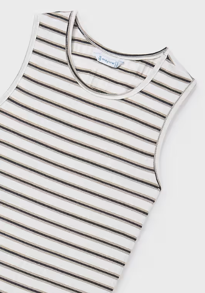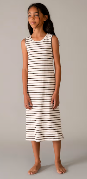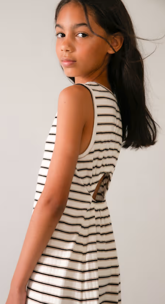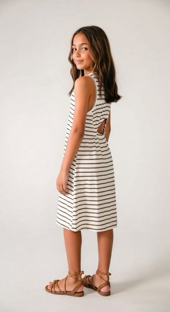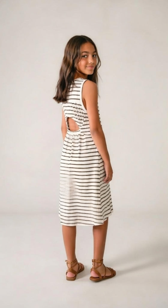 6914 Teen/Tween Girls Midi Striped Keyhole Back Dress - Natural-Black