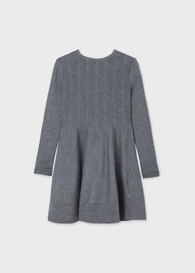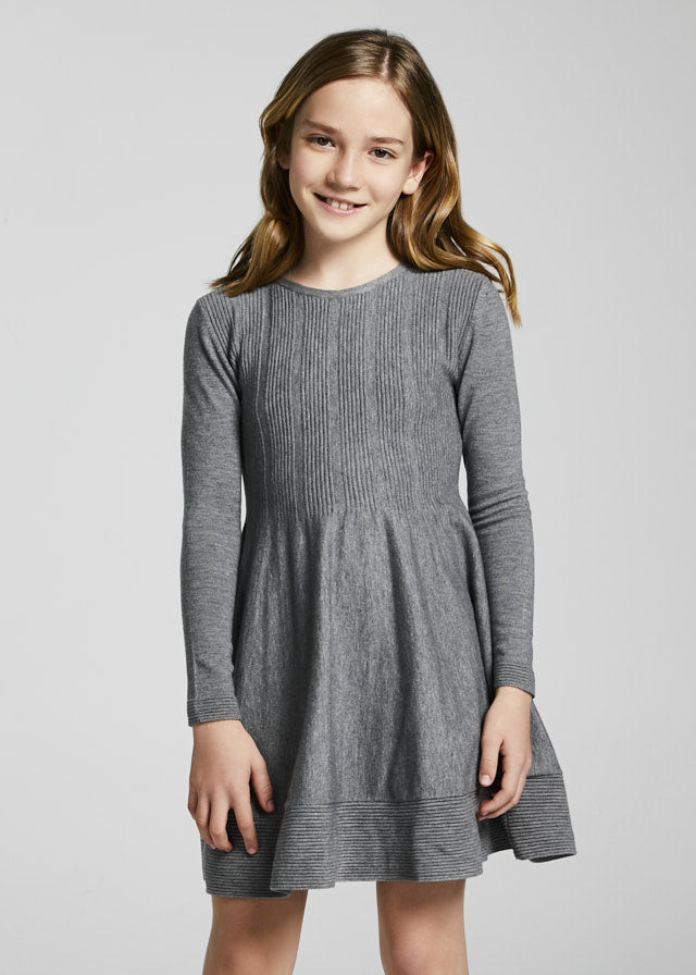 7926 Mayoral Tween/Teen Girls L/S Ribbed Knit Dress, Steel Grey