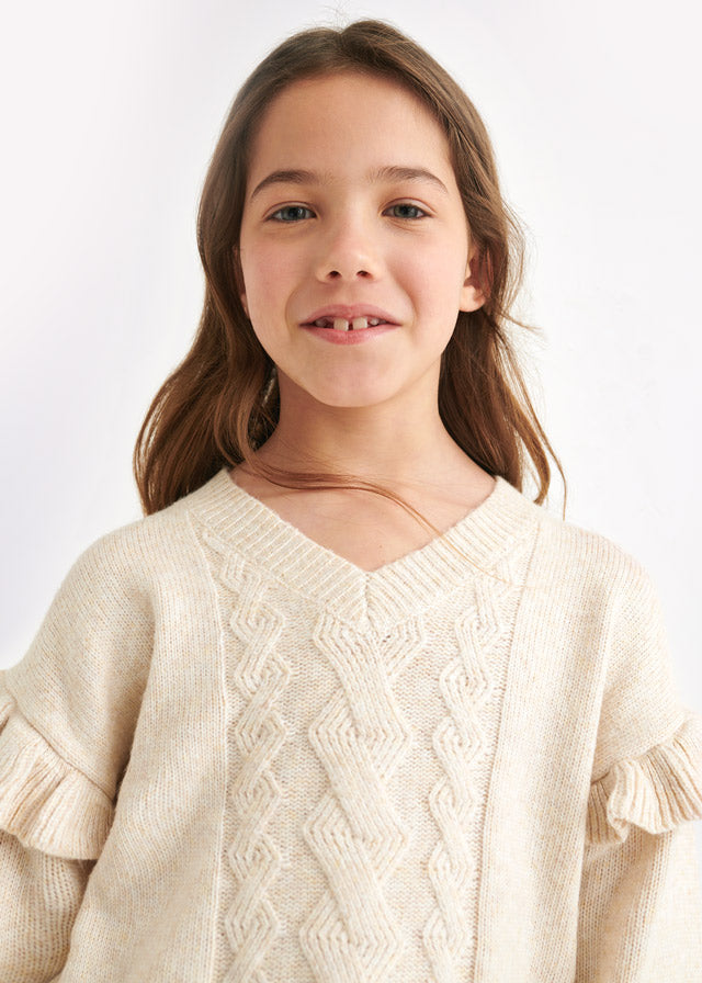 7947 Mayoral Girls Knitted Skirt and Top Set, Marzipan, 2 PC Set, Eco-Sustainable