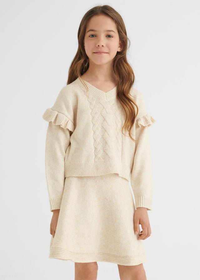7974 Mayoral Girls Knitted Skirt and Top Set, Marzipan, 2 PC Set, Eco-Sustainable