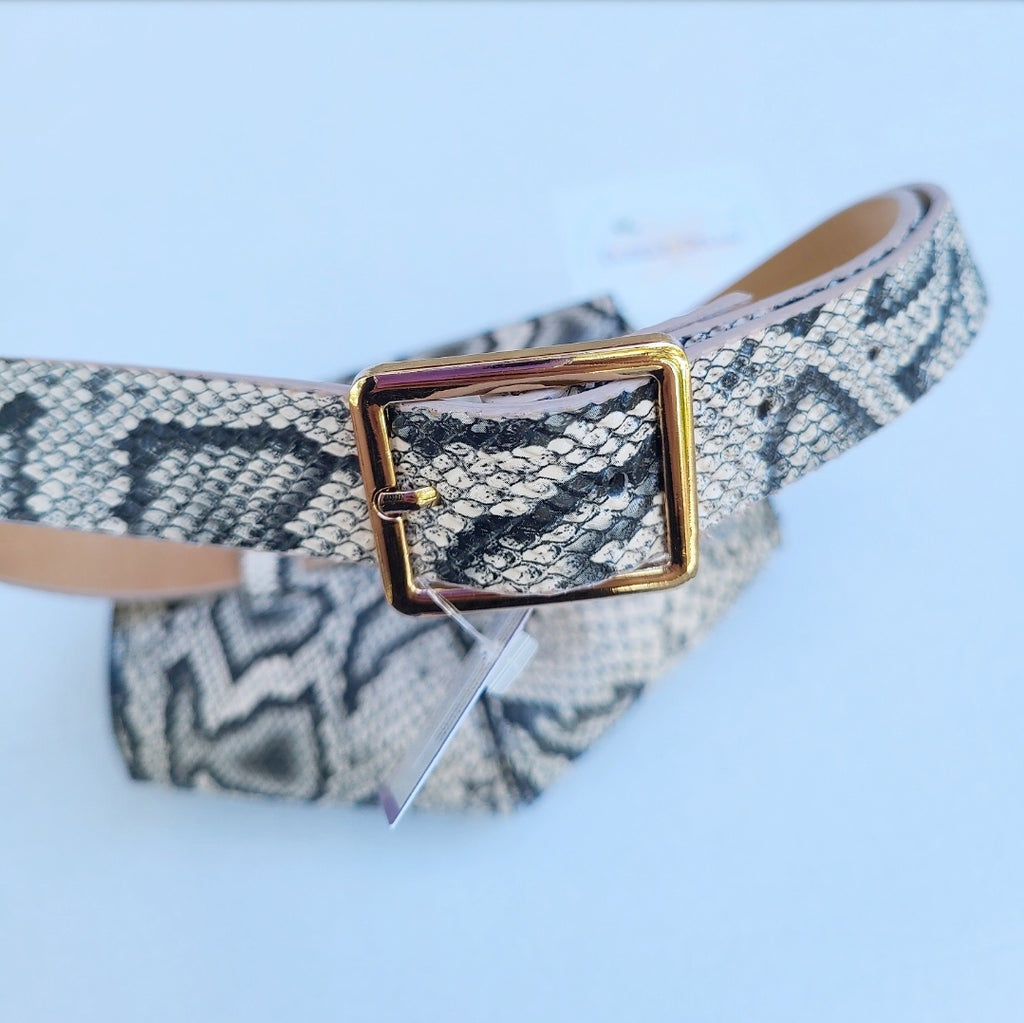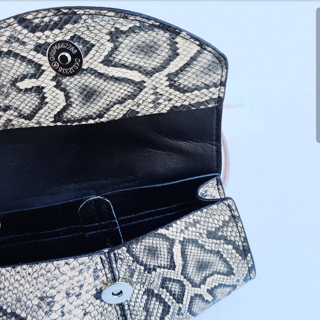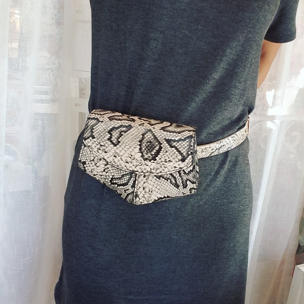 Faux Snakeskin Fanny Pack, Belt Bag - Black/Tan