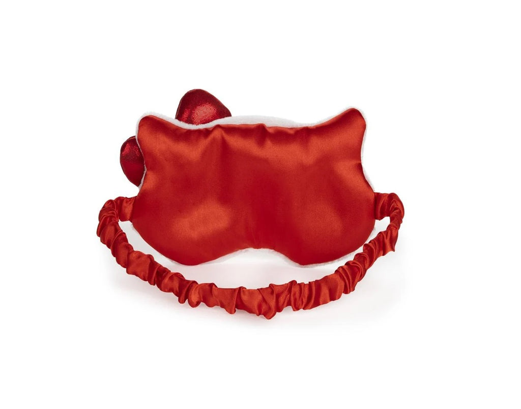 Plush sleep mask with satin elastic and satin backing. Classic Hello Kitty Red Bow.