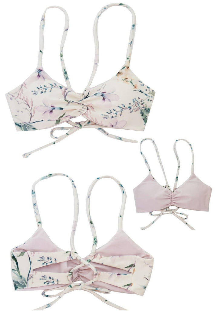 Tween/Teen Reversible Eco-friendly Sustainable Swim Bralette - Isla Corsica Natural Floral/Lt Lavender