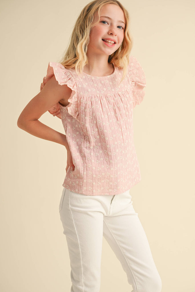 Tween/Teen Girls Flutter Eyelet Crochet Lace Tie Back Top - Blush Pink