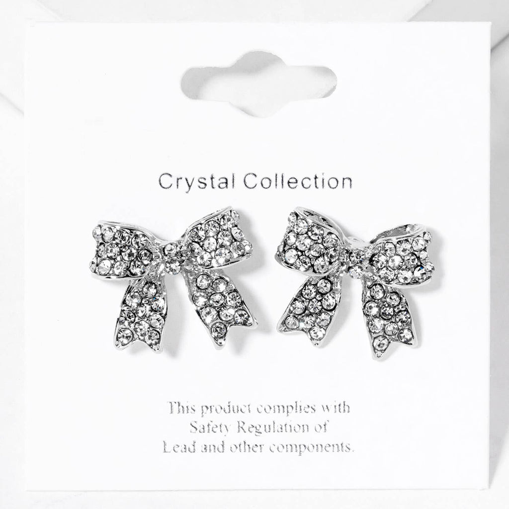Enhance your style with these charming bow stud earrings, featuring dazzling crystal embellishments. Perfect for adding a touch of elegance to casual and formal outfits. Lightweight and comfortable for everyday wear.
