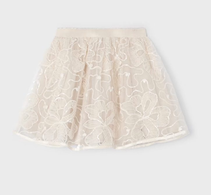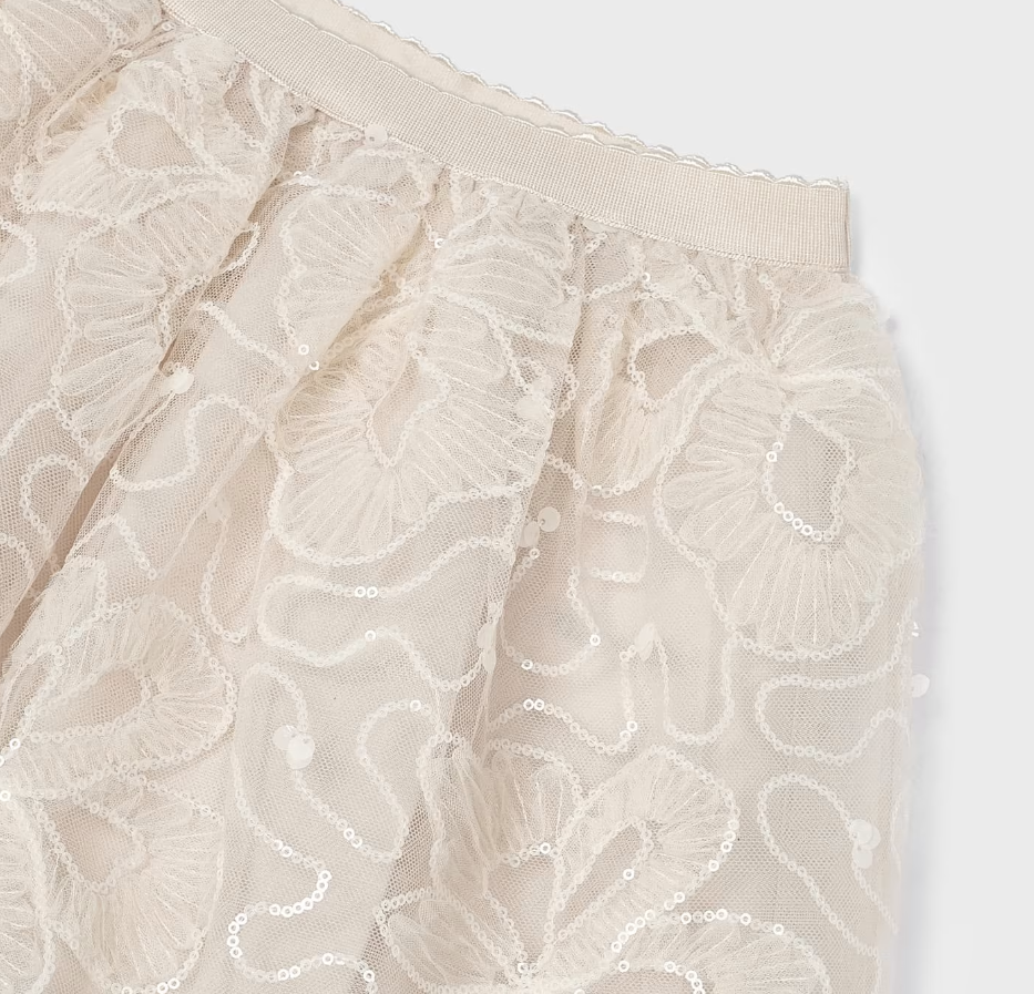 4901 Mayoral Mini Girls Sequined Applique Overlay Tulle Skirt - Champagne