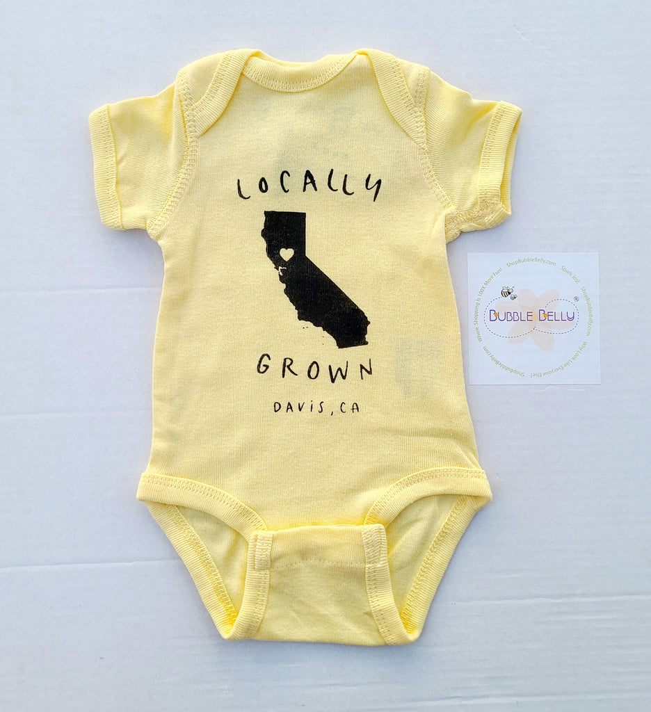 Locally Grown, Davis CA Custom Print Snap Bodysuit (CLICK FOR COLOR OPTIONS)