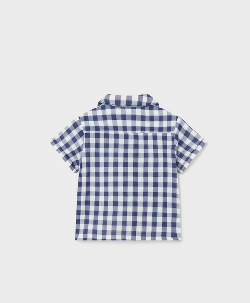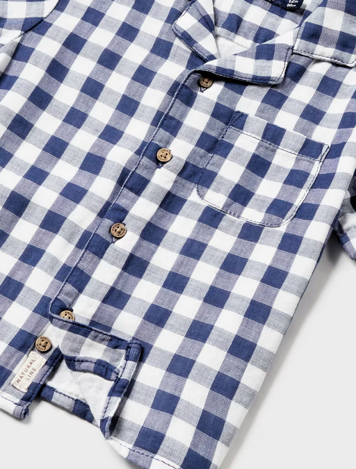 1110 Toddler Boys Sustainable Cotton S/S Button Up Shirt, Check Pattern - Ink Blue