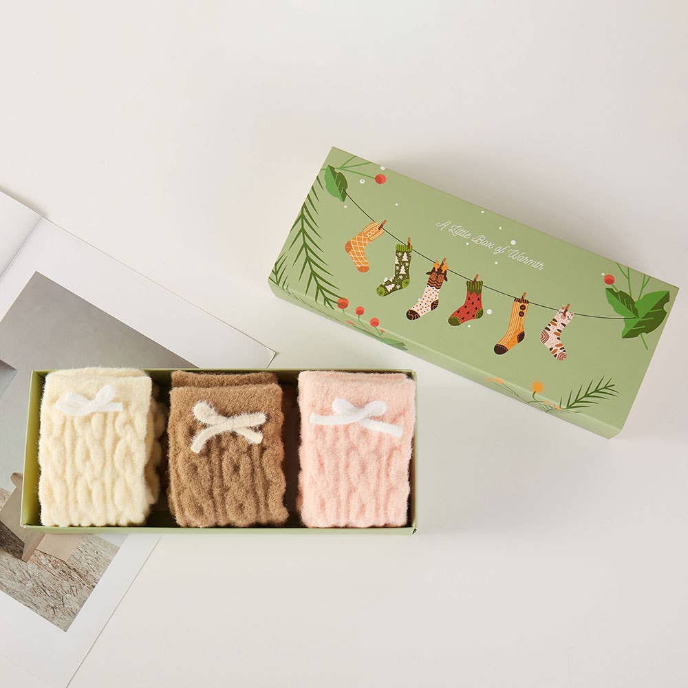 3Pairs - Ultra Luxe Bow Accent Warm Fuzzy Cable Knit Socks Gift Set