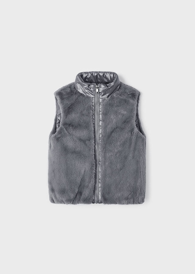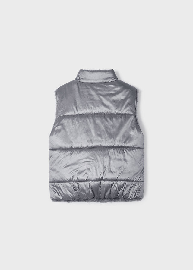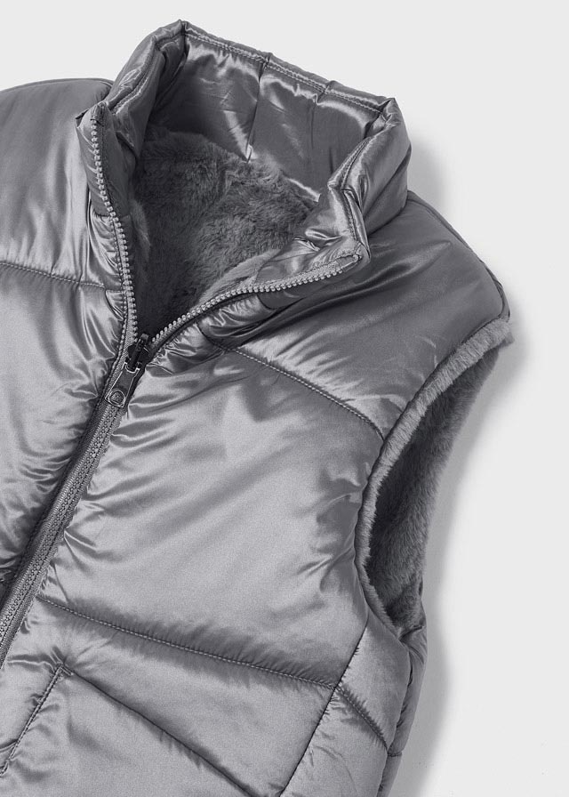 4311 Mayoral Girls Vest Reversible Matte Metallic Jacket, Steel, Eco-Friendly
