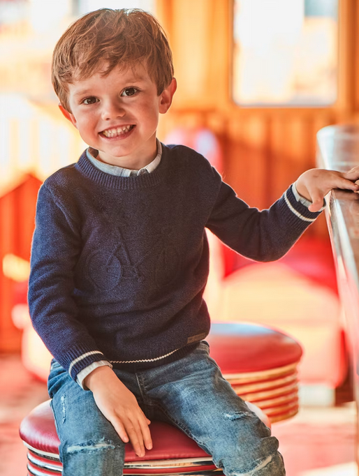 4341 Mini Boy Embossed Bike Sweater - Navy
