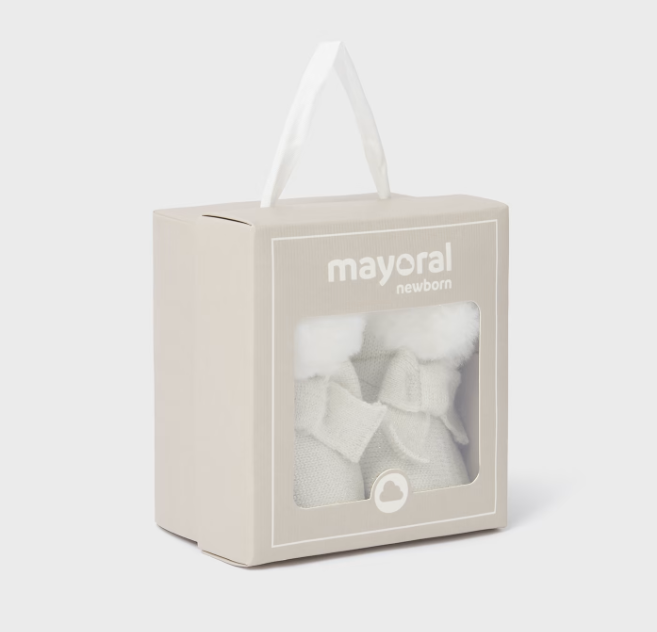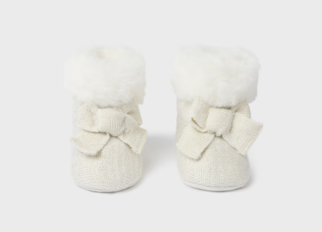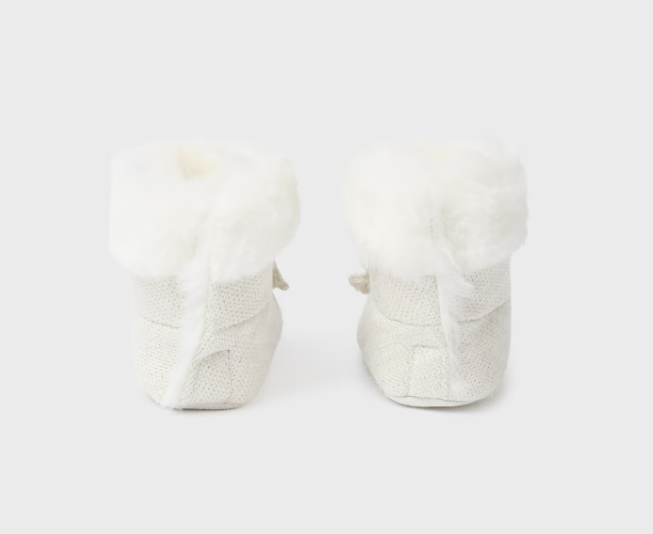 9686 Mayoral Baby Girls Faux Fur Lined Knit Booties - Champagne