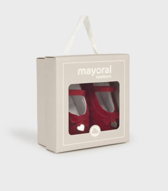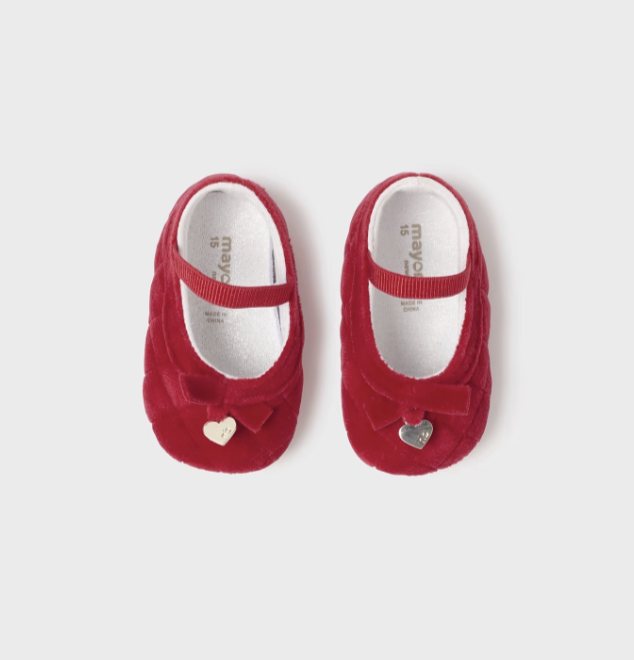 9689 Mayoral Baby Girls Dressy Quilted Velvet Non-Skid Mary Jane - Cherry Red