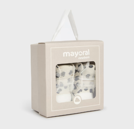 9693 Mayoral Baby Girls Ribbon Lace Up Natural/Black Heart Sneakers - Chickpea