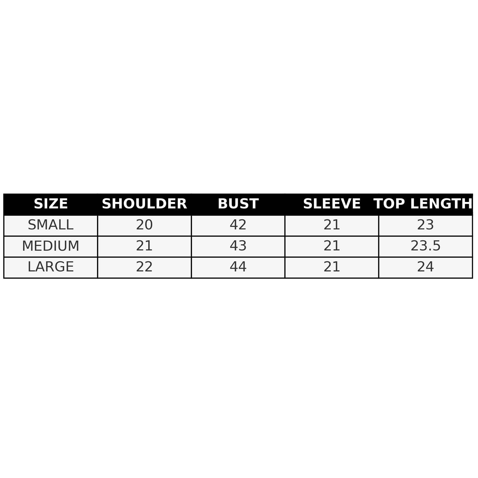 -Small: Shoulder 20", Bust 42", Sleeve 21", Top Length 23"
