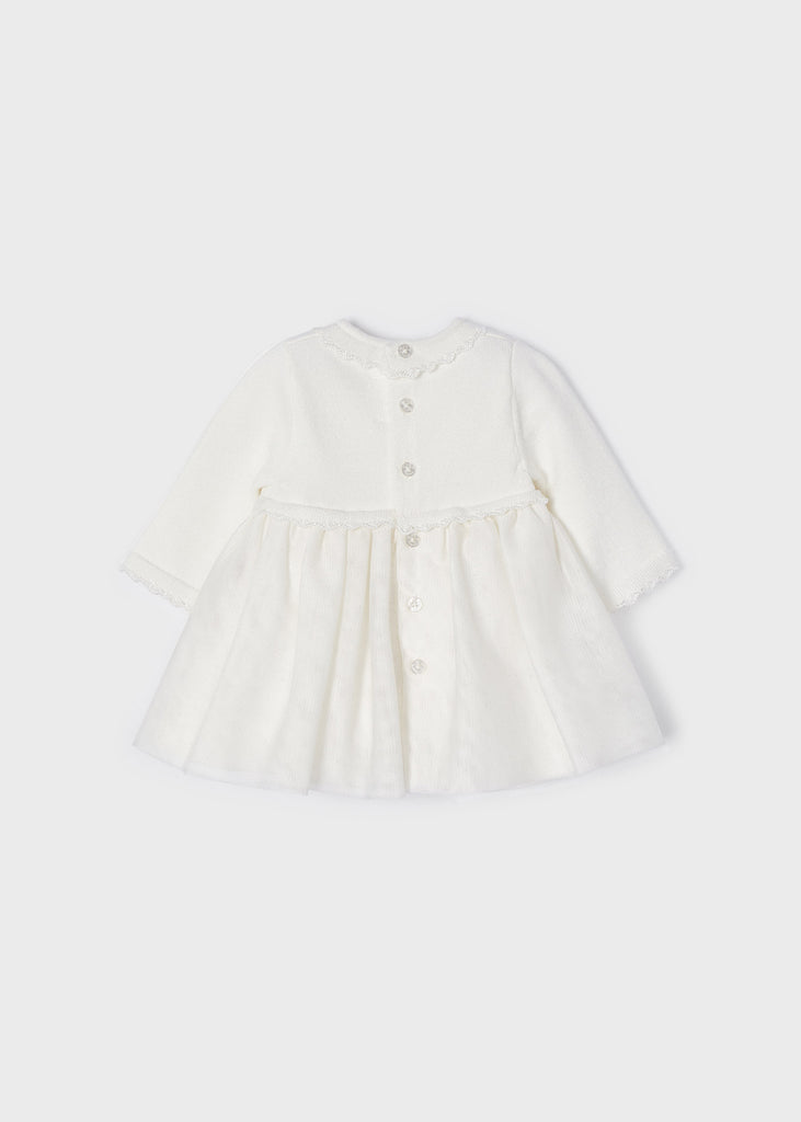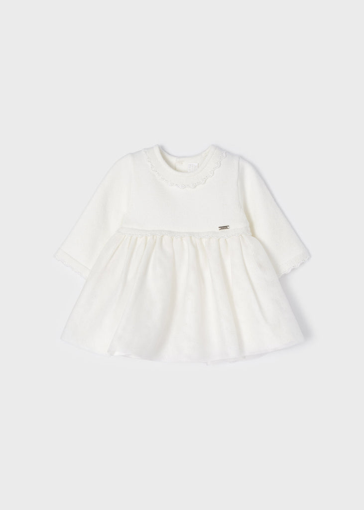 2822 Combined Knit & Tulle Formal Dress, Soft White