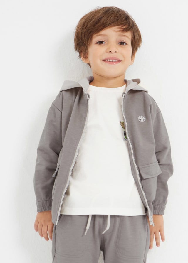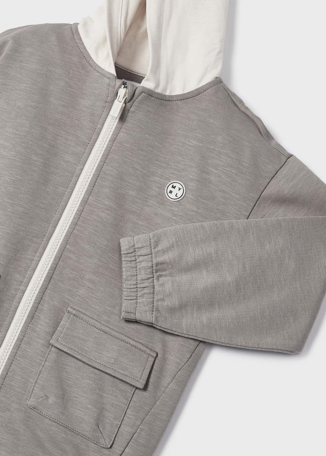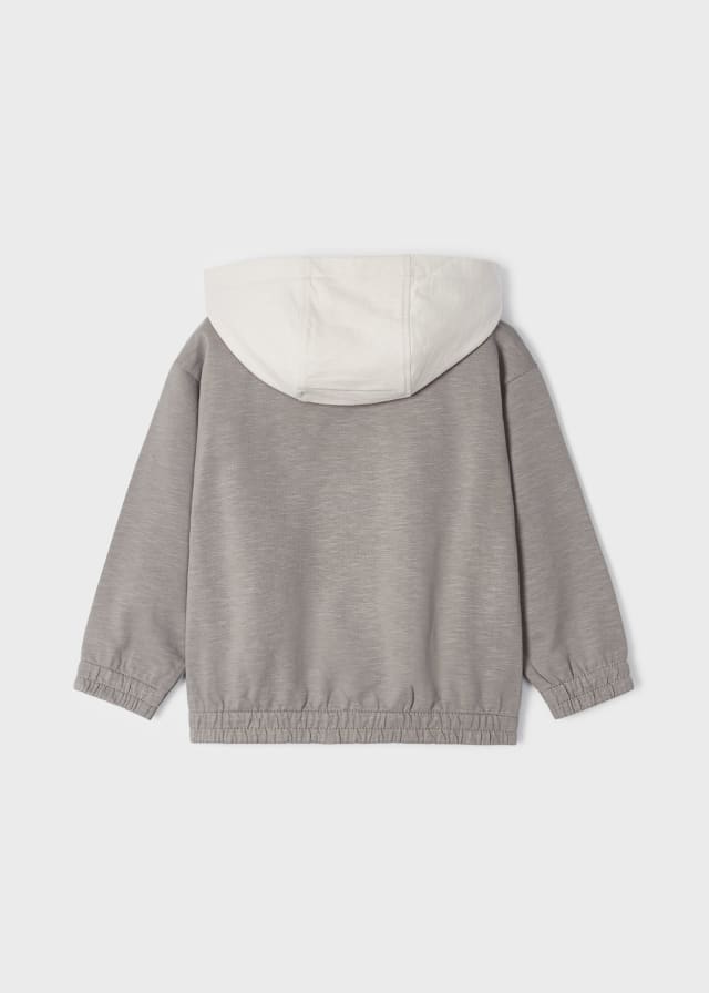 3458 Mayoral Mini Boys Relaxed Zippered Hoodie Jacket, Fossil Lt Grey