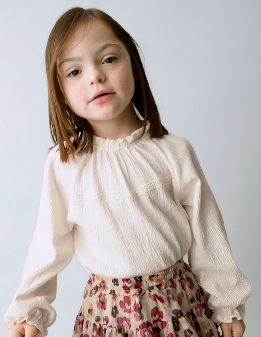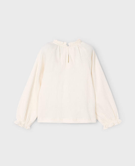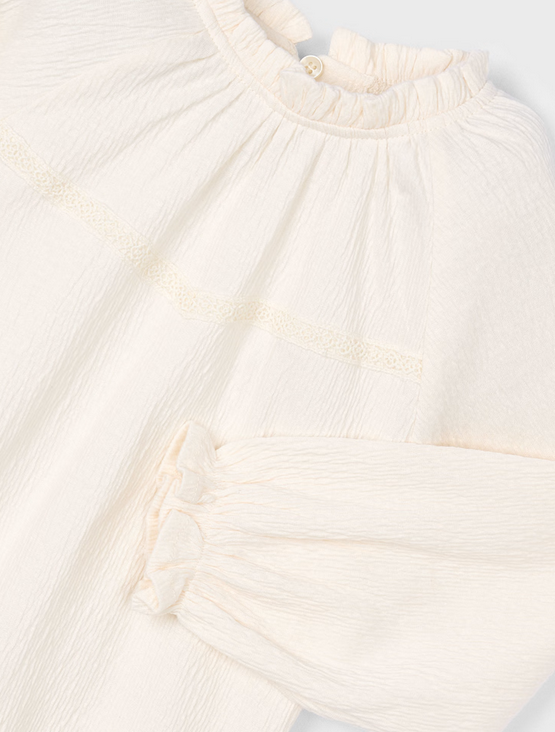 4003 Mini Girls Flowy Bambula Ruffled L/S Shirt - Natural Macchiato