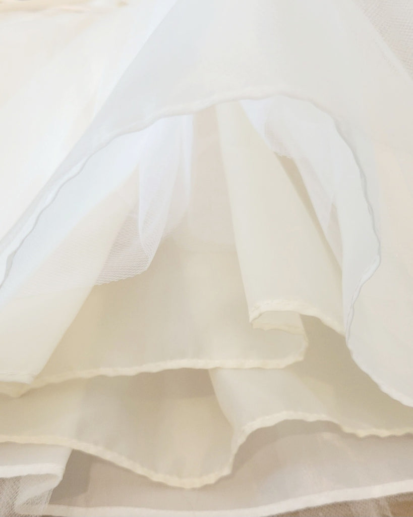 Sequined Special Occasion Satin Spaghetti Strap Tulle Overlay Dress - Ivory